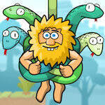 The jungle is beautiful, but it's also dangerous. Adam found himself tangled by the snakes, and he needs your help to get back to his wife, Eve. This game features 5 different zones, each with 12 challenging levels. When he got trapped, Adam dropped all of his apples, and it's your job to collect them all. The controls of this game are pretty simple, all you need is your mouse. When you start a level, you'll see Adam hanging from a platform. Drag your cursor over the snakes to free him, but be careful! If he falls down, you'll need to start over. On some levels, more than one snakes are tied to Adam. You should click on them in the correct order to collect every apple. In the top left of the screen, you can see the number of apples you've collected. If you make a wrong move and got stuck, you can restart the level by clicking on the icon located in the upper right corner of the screen.