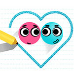 Rolled away from each other, the blue and the pink ball can't do anything but to look at each other with sad eyes. Let's give them their happy ending by getting them back! Your objective in this game is to complete each level by reuniting the two balls by moving them to each other. You can play the game with your mouse. To start the game, select a level from the menu. The balls sit away from each other at the different parts of each level. You should try to move them by drawing lines. Click and drag your mouse over the screen to draw a line or any shape. Be careful though! Some levels have gaps in them. If any of the balls fall into those, it'll be game over. You pass a level when you make two balls meet each other. Good luck!