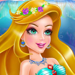 You know how important it is to have a healthy, glowing and perfect skin. Well, our mermaid's skin looks nothing like that, so she wants to fix this. But she can't do this alone. Do you think you can help us? In this game, your objective is to make sure her skin looks perfect and she is ready for tonight's party! We don't have much time, so we should start right away! All you need is your mouse to play this game. First, we should apply face cream and then wash her face. Now we can apply another cream, place a cucumber slice over each eye and wait for a while before we wash her face again. Great! Her skin already starts to look better. Now we can apply make-up and dress her up for the party. You can change her top and the color of her tail. You can choose accessories to make sure she shines like a diamond and get a flower crown for her. Have fun playing!
