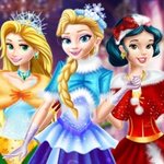 Deck the halls with boughs of holly. 'Tis the season to be jolly! Just put on your best dress and get ready to have fun with your loved ones. In this game, your objective is to dress up 3 of our gorgeous princesses and make sure they are dressed in clothes worthy of royalty. We have no time to waste so let's start now. To play this game, all you need is your mouse to play. Just click on the buttons you see on the left side of the screen and let's start! You don't need Santa Claus to bring you gifts this year because we already have dresses that you can choose from. You can go for red if you want but we also have blue and green dresses that you can pick. Now it is time to choose gloves, hair accessories, a necklace and earrings and last of all a short cloak to complete the look. We sure don't need a magic wand to look great when we have you.