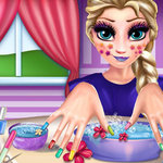 It is time for some makeover! Our beautiful ice queen of the royal kingdom is about to attend a crazy party. She needs someone who has a unique taste in fashion to help her out getting ready. She is letting you go crazy as much as possible because the theme of the party is chic and extravagance. First, start the game by clicking on the play button. Then, you will choose the unlocked makeup part, the left side of the screen. Put blush on her cheeks, and don't forget that you can glorify as much as you want. Then, the eyeshadows and mascara to be put. She looks kinda like a peacock. No? Okay, then we are done with this part and can move on to the second one. In this part, you should put nail polish on her nails. If you think the polishes are not showy enough, wait for the nail decors. You can add more glitter on the nail, add some patterns and change their colors. She will rock at the party!
