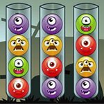 Halloween is the time when various curious characters appear. With the appearance of these creatures, a fun twist was added to one of the most popular puzzle games. Your objective here is simple. Through multiple different levels, you have to sort the monsters in tubes according to their color. You can use your mouse to play the game. The game has 2 different difficulty settings. The easy mode has more tubes and fewer monsters, but it will give fewer points. The hard mode has few tubes and more monsters but gives more points. Start with the easy mode if you would like to get yourself familiar with the game mechanics. Clicking on a tube will select the monster at the top. You can place monsters only on empty tubes, or on top of other monsters of the same color. Tubes can only hold 4 monsters, so plan your moves accordingly. In the top right corner, you will see your score. This will reduce with each passing second, and if it hits zero, you will fail the level. To get the most points, try to complete a level as fast as you can.