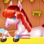 Aren't they the most beautiful thing in the universe? Their bright color, long hair, and brilliant eyes? But this one is injured, and we should do something about it! First, you should treat the injuries starting with taking the thick needles from her hooves. Clean the scars carefully so that they won't get infected. Then, we can apply a little bit of hoof care and make them bright like gold! Now it is time for a shower. Wash our unicorn gently starting with wetting her hair. Pour the shampoo and foam it thoroughly all around her hair. Perfect! You can move on to clean the shampoo and dry the hair to be brushed. It looks a bit messy now. so, you should brush it and cut the unnecessary long parts. She looks gorgeous just like in fairy tales! But one and the most important thing is missing. A horn! Once you put it, we are all done. She can go home safe and sound now. Nice work!